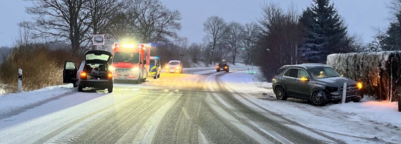 Marienheide -Ein 21-Jähriger aus Marienheide war am Sonntag (4. Dezember) mit seinem Kia auf der Müllenbacher Straße in Richtung Rodt unterwegs. Gegen 21:25 Uhr kam der 21-Jährige auf der winterglatten Fahrbahn nach rechts von der Straße ab, kollidierte zunächst mit einem Industrieschild und anschließend mit einem Baum. Der Marienheider sowie sein 21-jähriger Beifahrer wurden leicht verletzt und von Rettungskräften in ein Krankenhaus gebracht. Der Kia war nicht mehr fahrbereit und musste abgeschleppt werden ... mehr