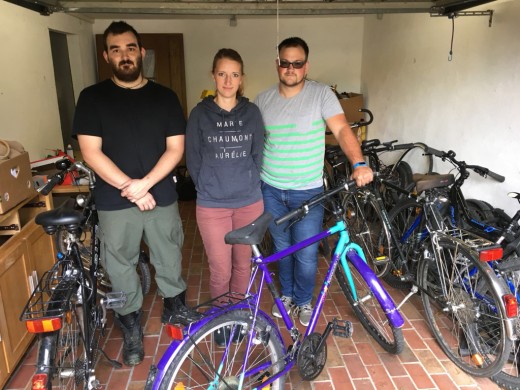 | Ehrenamtlich in einer Fahrradwerkstatt tätig waren die Auszubildenden des Oberbergischen Kreises Marco Dahl, Laura Stellberg und Fabian Steffens. (Foto: OBK). |