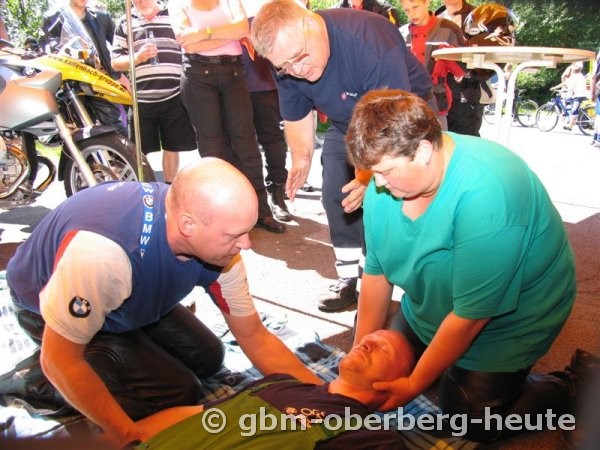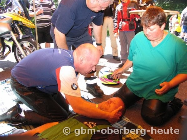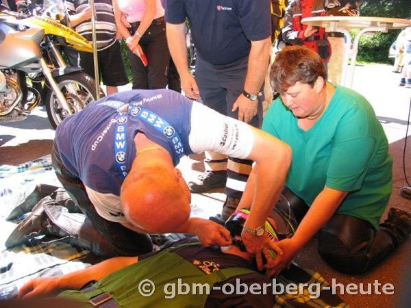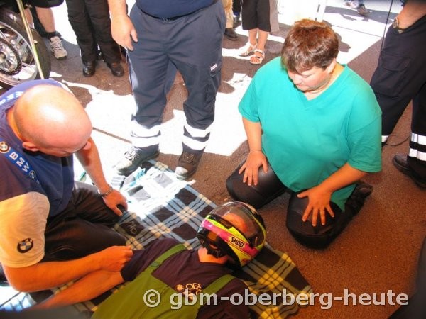 Übungsbeispiel der Malteser Unfallhilfe beim Motorrad-Aktionstags am Schladern-Ring 2005