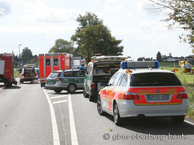Die Zeitstraße war während der Rettungsmaßnahmen und der Unfallaufnahme bis 15 Uhr gesperrt. An der Unfallstelle waren zwei RTH, Mehrere RTW und Notarztwagen, die Feuerwehr Bielstein/Weiershagen und Drabenderhöhe, mehrere Streifenwagen und zwei Notfallseelsorger. Einsatzleiter war Holger Mies von der Feuerwehr Drabenderhöhe. (oh-25.09.2010 14:43) (aktualisiert-25.09.2010 17:19) (aktualisiert-25.09.2010 21:21)