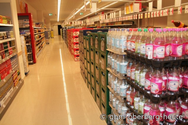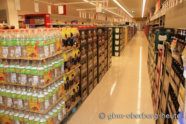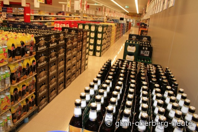 Der Getränkeeinkauf kann auf kurzem Weg in der nun im Markt integrierten Getränkeabteilung erledigt werden. Hier findet der Kunde auf 400 Quadratmetern ein großzügiges Sortiment, das keine Wünsche offen lässt. Neu ist unter anderem eine große Kühlzelle im Getränkeshop. Die Leergutrücknahme erfolgt direkt vor dem Zugang zum Getränkemarkt an den modernen Automaten.