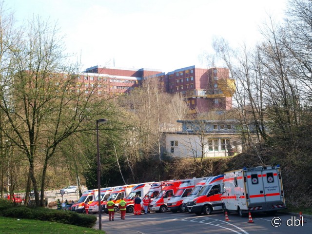 Zu diesem "Großschadensereignis" fand am Samstag eine praktische Übung im Bereich des Kreiskrankenhauses Gummersbach statt. Die gespielte Lage: In Folge des Stromausfalls entsteht ein technischer Defekt in einer Krankenstation. Starker Rauch breitet sich aus. 20 Patienten müssen aus dem Gefahrenbereich gerettet werden.