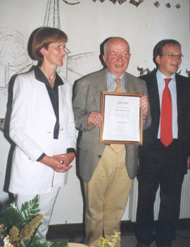 Herbert Salz und Friedhelm Horn, übrigens ein Bruder des Festgastes, sorgten mit ihren launigen Beiträgen für die Unterhaltung, ein hervorragend zusammengestelltes Kuchenbuffet für das leibliche Wohl der etwa 120 Gäste. Ein Kammermusikensemble ( Annette Tillmann, Julia Wagener, Flöten, Walter Köster, Klavier) umrahmte den offiziellen Teil mit einer Triosonate von Händel für zwei Querflöten und Basso Continuo sowie mit Melodien von Robert Stolz. Mit dem gemeinsam gesungenen Lied "Kein schöner Land" am Klavier begleitet von Ratsherr Wilhelm Ehrenstein fand ein gemütliches Beisammensein seinen stimmungsvollen Ausklang. (oh-10.9.2004 16:59)