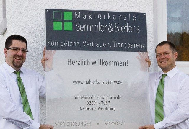 Waldbröl - Als unabhängige Makler in Waldbröl-Heide bieten Ihnen Bastian Semmler und Oliver Steffens die Vermittlung von Versicherungen, Vorsorgelösungen, Finanzierungen und Immobilien aus einer Hand an. Die beiden Waldbröler haben zu Beginn des Jahres ihre Kanzlei in Heide eröffnet. "Für Ihre Sicherheit nehmen wir uns Zeit!" lautet das Motto der unabhängigen Makler. Zum Leistungsangebot: