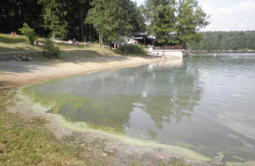 • Ein erstes Zeichen für die Bildung von Blaualgen ist eine geringe Sichttiefe durch eine starke Trübung des Wassers.