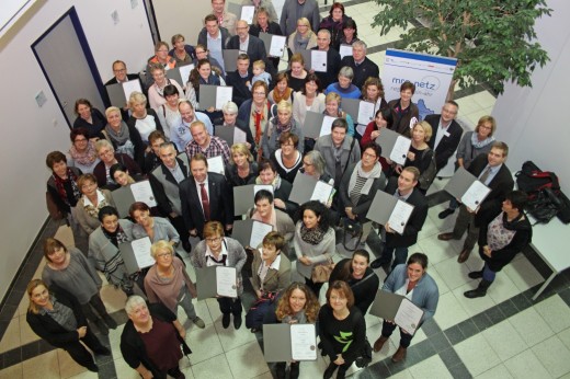 | Die große Gruppe der ausgezeichneten Einrichtungen fand sich im Kreishausfoyer zusammen (Foto:OBK) |