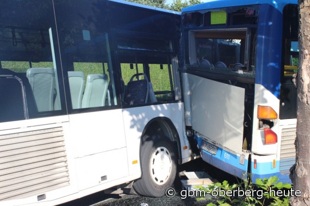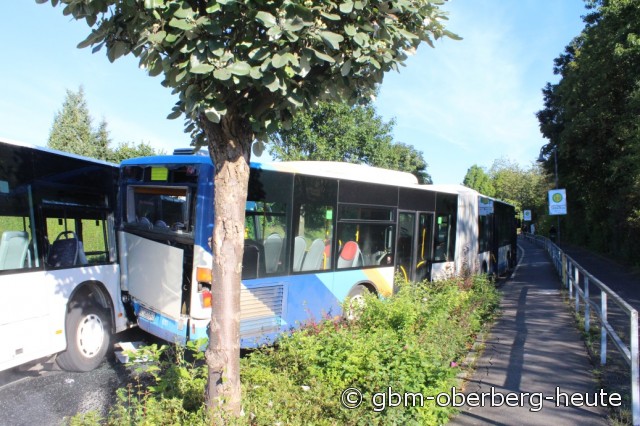 Morsbach - Heute Morgen ereignete sich ein Unfall mit zwei Schulbussen vor dem Schulzentrum an der Hahner Straße, bei dem fünf Schüler verletzt wurden. Der 36-jährige Fahrer eines Gelenkbusses hatte sein Fahrzeug in der Bushaltebucht angehalten. Nachdem die Schulkinder den Bus verlassen hatten, stieg der Fahrer aus, da eine der Bustüren nicht richtig schloss. Der 36-Jährige befand sich auf dem Gehweg als er bemerkte, dass der Bus auf der Gefällstrecke plötzlich zurück rollte.