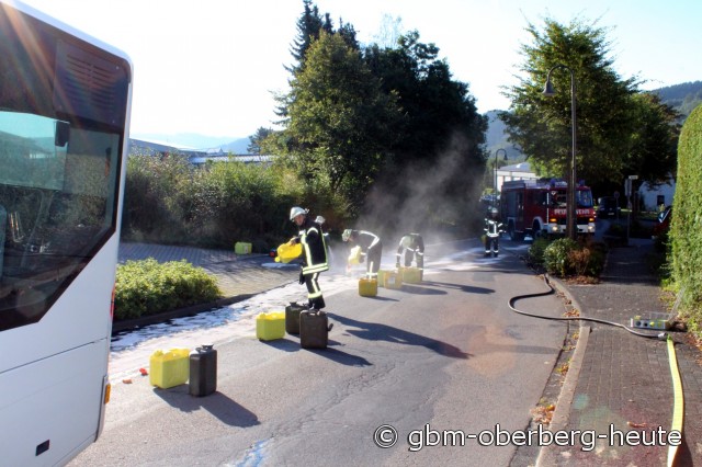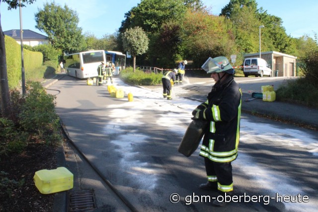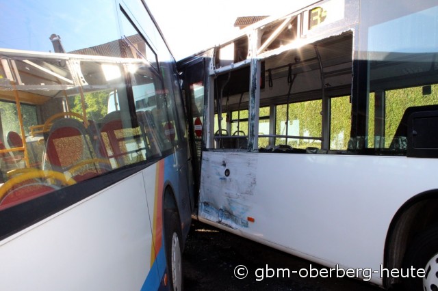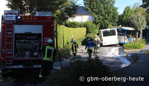 Der Fahrer versuchte noch in den Bus zu springen, um diesen zu stoppen. Dies gelang ihm aber nicht; der Bus rollte in die Seite eines vorbeifahrenden weiteren Schulbusses. Vier Kinder im Alter von sechs bis zehn Jahren erlitten dabei leichte Verletzungen. Auch der 36-Jährige Busfahrer verletzte sich bei dem Versuch den Bus zu stoppen leicht. Die Feuerwehr Morsbach leistete Technische Hilfe.