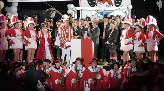 Dieser Übermacht konnte Bürgermeister Rüdiger Gennies anschließend nichts mehrt entgegensetzen. Er streckte lächelnd die Waffen, übergab dem neuen jecken Herrscher Zepter und Rathausschlüssel sowie seiner Prinzessin einen Blumenstrauß und wünschte allen Jecken in nah und fern eine fröhliche und friedliche Karnevalssession. Das Prinzenpaar „revanchierte“ sich im Anschluss daran mit einer wunderschönen Aufgabe für den Bürgermeister.
