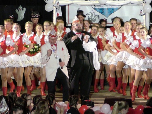 Licht aus und Spot an für das neue Prinzenpaar. Bestens vorbereitet und schon seit Wochen diesem großen Moment entgegenfiebernd genossen Prinz Ralf II. und seine Prinzessin Jutta ihren Einmarsch in vollen Zügen. Endlich war es so weit und gemeinsam mit ihrem jecken Schmölzjen bahnten sich die neuen Tollitäten ihren Weg durch das begeisterte Narrenvolk, die ihrem neuen Prinzenpaar einen fantastischen Empfang bereiteten. „Ich bin in meinem Leben so viele Kilometer gelaufen, aber diese Meter waren die lautesten, aufregendsten, spannendsten, aber auch die schönsten 100 Meter, die ich in meinem Leben zurückgelegt habe“, dankte Prinz Ralf II., seines Zeichens ein begeisterter Läufer, strahlend allen Jecken, als er nach einem bützchen- und blumenreichen Weg die Bühne erreichte.