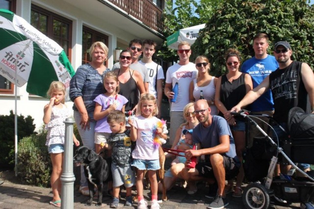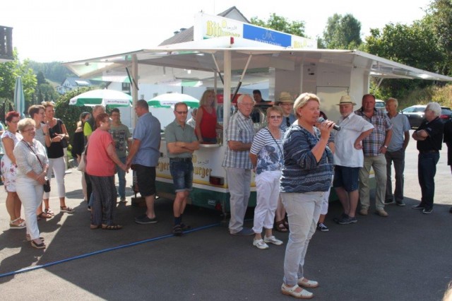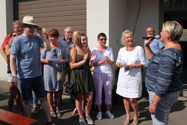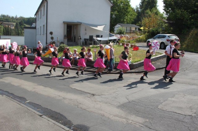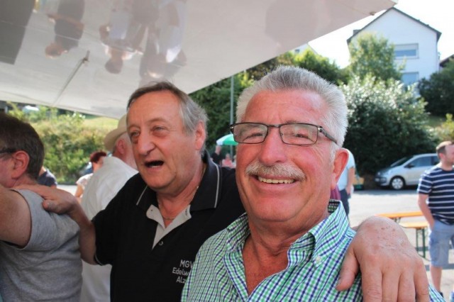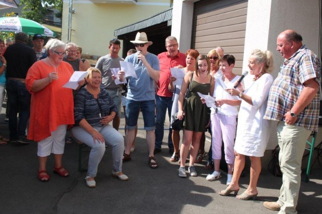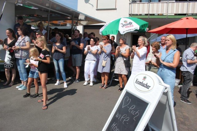 Nur für solche intensive Plauderstündchen fehlte am Sonntag in der Gaststätte „Zum Backes“ in Alzen erst einmal die Zeit. Mehr und mehr Gratulanten trafen bei schönstem Sommerwetter über den Tag verteilt im Biergarten ein, und sie hatten so einiges im Gepäck. Der „MGV Edelweiß Alzen“ schmetterte vor seinem Vereinslokal aus goldenen Kehlen meisterhafte Ständchen. Die Mini-Wolpis ließen die Röckchen fliegen und zeigten eine tolle Tanzshow.