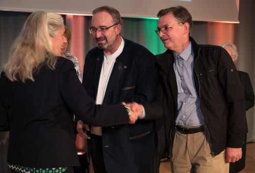 Stellvertretend für den Chor nahmen Vorsitzender Reinhold Mauelshagen und Chorleiter Dr. Dirk van Betteray Urkunde und bronzene Plakette entgegen, die auf der Vorderseite das Bildnis des Berliner Liedertafelgründers Carl Friedrich Zelter zeigt und auf der Rückseite den Bundesadler. Vorsitzender und Chorleiter freuten sich über diese Anerkennung langjähriger engagierter Arbeit im Dienste geistlicher und weltlicher Chormusik. Sie dankten besonders Schriftführer Dietmar Stangier für die umfangreiche Recherche, die im Vorfeld nötig war sowie allen Chormitgliedern für ihren unermüdlichen Einsatz.