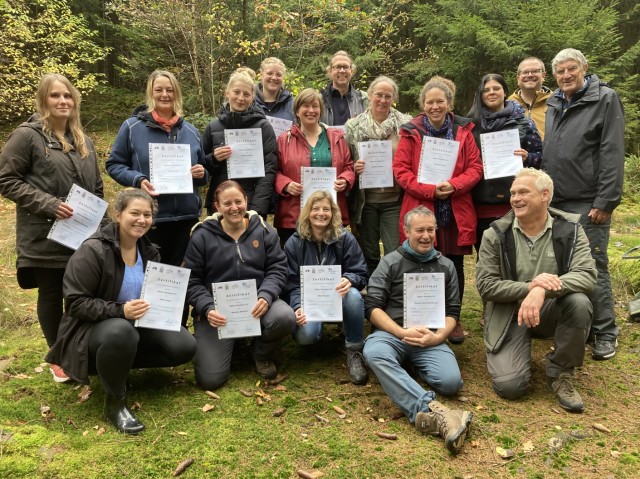 Oberberg - 13 weitere Erzieherinnen und Erzieher aus unterschiedlichen Kindergärten im Oberbergischen Kreis und dem Rhein-Sieg-Kreis haben jetzt ihren Abschluss als Naturerzieherinnen gemacht. Die Weiterbildung befähigt die Absolventinnen sich kompetent und sicher mit Vorschulkindern in der Natur zu bewegen und ihnen die Bedeutung von Klima- und Umweltschutz zu vermitteln. Das Kreisjugendamt des Oberbergischen Kreises unterstützt die Qualifizierung waldpädagogischer Fachkräfte in Kindertageseinrichtungen.