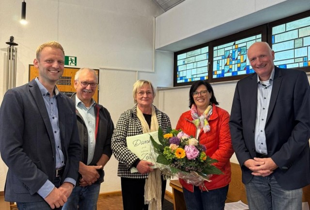 Im Rahmen eines Frühlingsfestes mit den Bewohnern und Mitarbeitenden des Wohnverbundes würdigten kürzlich die Vertreter der katholischen Pfarrgemeinde St. Gertrud, Andrea Nosek, Jürgen Schmitz und Michael Dietershagen, das Wirken von Heike Schmidt. Matthias Imhäuser wird künftig die Gesamtleitung des Wohnverbundes übernehmen, Tobias Schneider wird sein Stellvertreter sein. (red-26.05.2025 14:45)