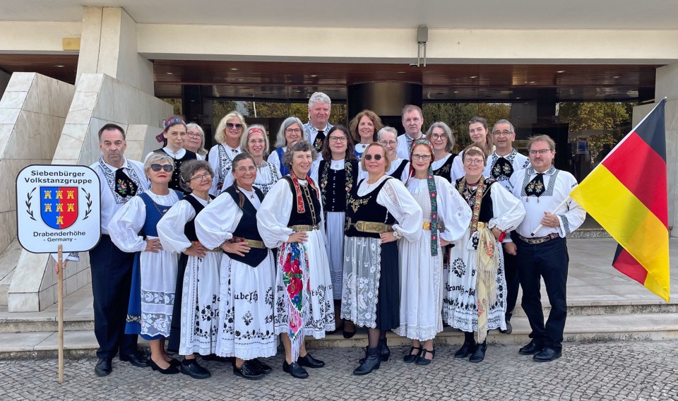 Besondere Freude bereitete der Austausch von Volkstanztraditionen mit den weiteren Gruppen. „Jede Gruppe präsentierte Tänze aus ihrer Heimat und es wurde auch gemeinsam getanzt“, ergänzte Edeltraute Gündisch-Wagner: „So entstanden neue Freundschaften über Landesgrenzen hinweg.“ Die besondere Beziehung zur Gruppe Entretenga soll bereits im nächsten Jahr intensiviert werden. Dann sind die Portugiesen zum Jubiläum „60 Jahre Siebenbürger-Sachsen-Siedlung“ nach Drabenderhöhe eingeladen. Die runde Zahl wird vom 26. bis zum 29. Juni 2026 gefeiert. Zu dem Anlass ist nicht nur die Siebenbürger Volkstanzgruppe am Start, sondern auch die weiteren Siebenbürgischen Ensembles und Einrichtungen beteiligen sich am Festprogramm. Die Tänzerinnen und Tänzer blicken erwartungsvoll nach vorn und freuen sich auf ein Wiedersehen. (red.-Sonntag, 23. November 2025)
