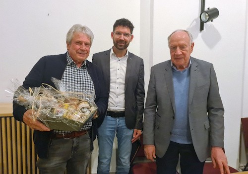 | Ludger Rosenthal ® lobte Schuhs großes Engagement und überreichte ihm als Dankeschön einen Präsentkorb. (Foto: Christoph Buchen) |