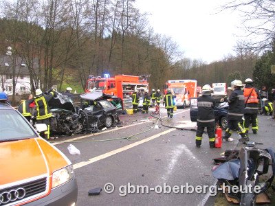Die L 302 musste für den Zeitraum der Bergung und der Unfallaufnahme für rund zwei Stunden gesperrt werden. An beiden Fahrzeugen entstand Totalschaden. (oh-21.1.2006 19:46)