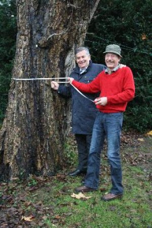 Den wahrscheinlich dicksten Walnussbaum Deutschlands konnte Landrat Hagen Jobi vergangene Woche in Bladersbach bewundern. Meinhard Spaunhorst geht davon aus, dass sein Walnussbaum mit einem Stammumfang von 3,14 Metern Deutschlands stolzestes Exemplar ist. Rund 45 kg Walnüsse wurden alleine in diesem Jahr geerntet. Landrat Jobi legte selbst Hand an, um die Angaben der Spaunhorsts zu bestätigen. „Das hätte ich nicht gedacht, dass der so dick ist“, lautete sein wohlwollendes Fazit zu dem natürlichen Schwergewicht.