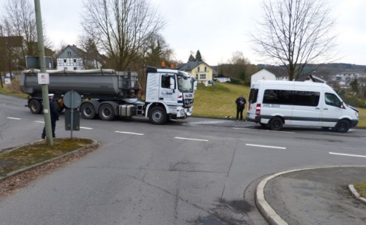 Nümbrecht - 30.000 Euro Schaden entstand bei einem Unfall, der sich heute Vormittag auf der Bahnhofstraße in Nümbrecht ereignete. Um kurz vor 9 Uhr kam es dort zum Zusammenstoß zwischen einem Kleinlaster und einer Sattelzugmaschine. Der 43-jährige Fahrer des Kleintransporters kam auf der Schloßstraße aus Richtung Schloß Homburg und wollte nach links auf die vorfahrtsberechtigte Bahnhofstraße einbiegen. Dabei kam es zum Zusammenstoß mit der Sattelzugmaschine, die auf der Bahnhofstraße von rechts heran fuhr.