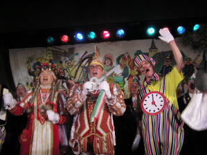 Inklusive dem Bürgermeister, Wolfgang Oberbüscher. Im gestreiften Clownsoutfit feierte er richtig ab und bot dem Publikum diesmal eine ganz besondere Proklamation. Mit Norbert Bolz stürmte er die Bühne als "Plitsch und Platsch", griff das Mikrophon und stellte das neue Dreigestirn mit Gesang vor.