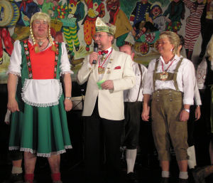 | Das Vorjahresprinzenpaar in vertauschten Rollen: Prinz(essin) Wolfgan und seine Helga, einmal als Prinz. |