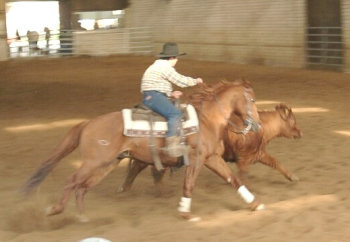 | Lutz mit Lightnin Chick Olena in der Cowhorse |