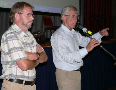 Dann warteten alle gespannt auf das Eintreffen von Franz Alt, der mittags noch einen Vortrag in St. Gallen gehalten hatte und durch die Überschwemmungen in der Schweiz verspätet mit dem ICE zum Bahnhof Siegburg anreiste. Alt, der von 1972 bis 1992 das Fernsehmagazin „Report“ moderiert hat, ging zuerst auf die derzeitige weltweite Umweltsituation ein, wobei er besonders den jüngsten Hurrikan über New Orleans und die nachfolgende Ölpreisexplosion erwähnte. Die Naturkatastrophen haben sich in den letzten 40 Jahren verachtfacht, stellte Franz Alt fest. Der OBN Morsbach hatte sicher im Winter, als er Franz Alt verpflichtete, nicht daran gedacht, dass der Vortrag so weltaktuell werden würde.