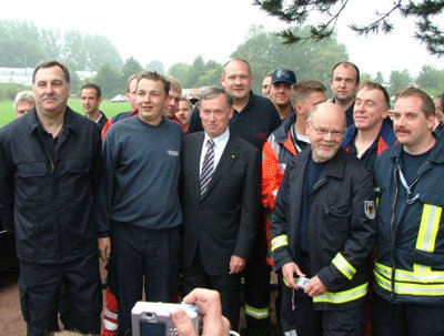 | Bundespräsident Horst Köhler bedankt sich bei den Einsatzkräften des Oberbergischen Kreises für deren Einsatz. |