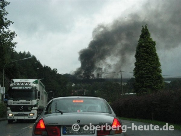 Tanklaster stürzt brennend von Wiehltalbrücke