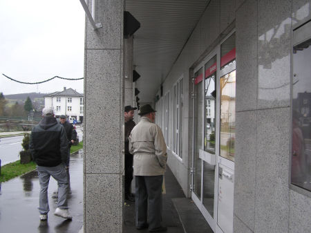 Die Kunden wunderten sich, dass die Tür der Sparkasse verschlossen war.