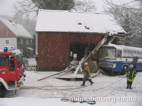 Bus schleudert in Scheune