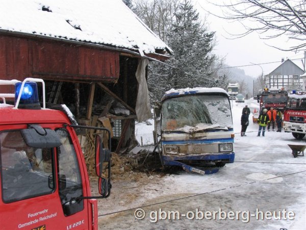 Bus schleudert in Scheune