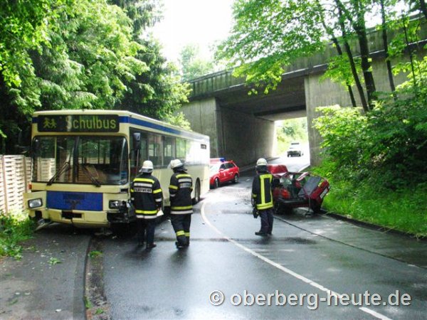 Unfall mit Bus – PKW-Fahrerin eingeklemmt