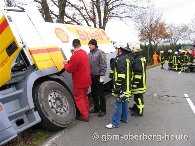 Tanklaster prallte gegen Baum und drohte abzustürzen