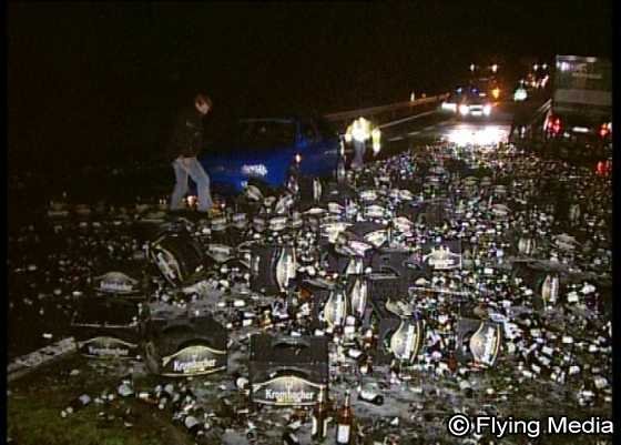 Bierschwemme auf A45 – „Helfer“ kamen aus allen Richtungen