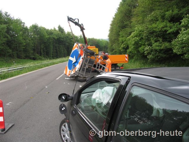 Twingo rauscht ungebremst in Baustellen-Anhänger