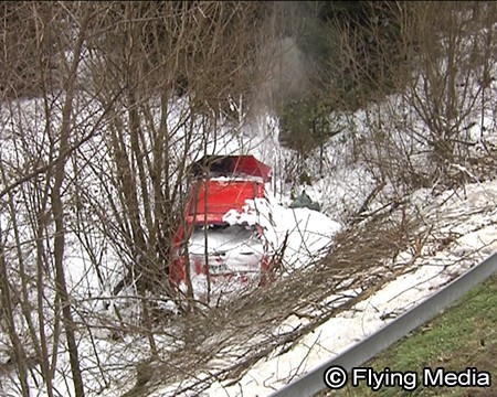 PKW nach Überschlag in Flammen aufgegangen