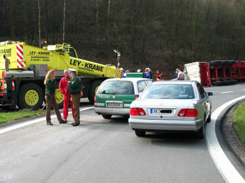 Kompost-Laster umgekippt – Mercedes rammt Streifenwagen
