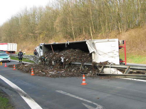Kompost-Laster umgekippt – Mercedes rammt Streifenwagen