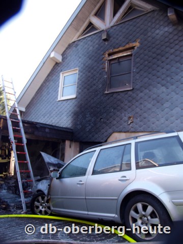 Auto und Garage durch Feuer zerstört