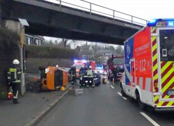 Gummersbach - Auf der Brückenstraße in Gummersbach kam es zu einem Verkehrsunfall, bei dem zwei Autofahrerinnen aus Gummersbach leicht verletzt wurden. Eine 69-jährige Frau fuhr gegen 15:10 Uhr mit ihrem Golf auf dem linken Fahrstreifen der zweispurigen Brückenstraße in Richtung der "Westtangente". Als sie den Fahrstreifen wechselte, kam es zum Zusammenstoß mit dem Polo einer 62-Jährigen, die in gleicher Richtung, auf dem rechten Fahrstreifen unterwegs war. In der Folge kam der Polo nach rechts von der Fahrbahn ab, kollidierte mit einem Metallzaun und kippte schließlich auf die linke Fahrzeugseite ... mehr