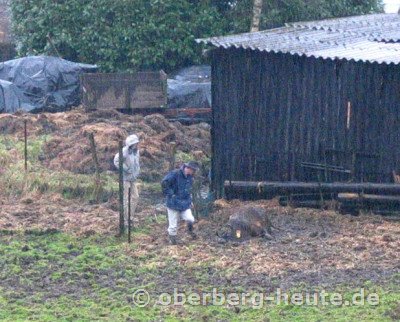 Hesselbach - Als ein Bauer heute gegen 16:00 Uhr seine gestürzte Kuh aus tiefen Schlamm und Mist retten wollte, brach das alte Tier erneut zusammen und begrub den Mann unter sich. Die alarmierten Rettungskräfte kamen nicht zum Einsatz, da sich der Bauer schließlich selbst befreien konnte. Der Kuh konnte nur noch durch die erlösende Spritze geholfen werden…(so-10.2.2005 17:25)