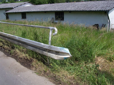 Die an der Unfallstelle beginnende Leitplanke ist laut der Anwohner am Mühlengraben ein uraltes scharfkantiges Modell, das überdies keinen Schutz bieten würde. Der ehemals dahinter verlaufende Bach sei längst umgeleitet worden. Seitdem befindet sich hinter der Planke, die den engen Mühlengraben an dieser Stelle noch weiter begrenzt, lediglich eine kleine Wiese. (oh-8.6.2005 20:43)