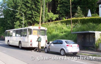 Morsbach - Unachtsamkeit war möglicherweise die Ursache für einen Auffahrunfall, der sich heute Morgen gegen 8:20 Uhr auf der Waldbröler Straße in Höhe eines Autohauses ereignete. Der Fahrer eines PKW war nahezu ungebremst auf einen stehenden Bus aufgefahren. Er verletzte sich bei dem Unfall leicht. An Bus und PKW entstand ein Sachschaden von insgesamt 15.000 Euro…