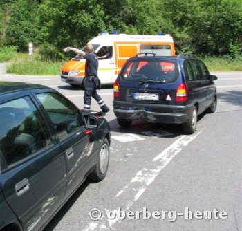 Gummersbach - Gestern Mittag kam es auf der Westtangente zu einem Auffahrunfall mit drei leicht Verletzten. Zwei hintereinander fahrende PKW hatten am Ende der Straße verkehrsbedingt angehalten. Die vorausfahrende Opelfahrerin ließ den Gegenverkehr erst passieren, fuhr schließlich an, um kurz darauf erneut einzuhalten, da ein weiteres Fahrzeug den Weg kreuzte. Der nachfolgende PKW bemerkte dieses Bremsmanöver zu spät und fuhr auf. (soh-29.6.2005 15:59)