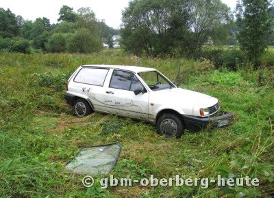 Der Fahrer konnte sich selbstständig aus seinem PKW befreien und blieb unverletzt. Sein Polo ist ein Fall für die Schrottpresse. (oh-24.8.2005 15:13)
