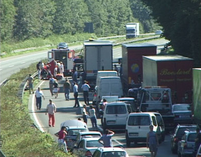 Die A4 war in Richtung Olpe für über eine Stunde voll gesperrt. (oh-31.8.2005 16:48) Fotos: Flying Media TV-News/Nachrichtenagentur