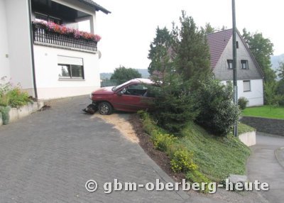 Morsbach - Zu tief ins Glas hatte der 49-jährige Fahrer eines PKW geschaut, der heute Nachmittag auf der Kirchstraße von der Fahrbahn abkam, gegen eine Gartenmauer prallte und beinahe rückwärts eine Böschung hinunter gefahren wäre. Das total zerstörte Fahrzeug blieb jedoch an einem Baum hängen.
