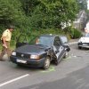 Wiehl-Weiershagen – Ein 47-jähriger Mitsubishi Fahrer hatte im Einmündungsbereich der Weiershagener Straße eine dort wartende Pkw Fahrerin zu spät entdeckt. Um nicht aufzufahren, bremste der Fahrer stark ab und wich nach links aus. Dort kollidierte er jedoch frontal mit einem entgegenkommenden VW. Der Beifahrer im VW wurde leicht verletzt. Beide PKW waren nicht mehr fahrbereit, es entstand hoher Sachschaden. (oh-11.9.2005 10:20)