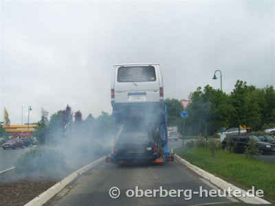 Das Fahrzeug, dessen Windschutzscheibe gerissen war, Schäden an der Beleuchtung sowie gelöste Stoßdämpfer und eine ausgeschlagene Spurstange, aufwies, hatte zudem insbesondere gravierende Schäden an der Bremsanlage. Aufgrund der erheblichen Mängel wurde die Weiterfahrt untersagt und ein Ordnungswidrigkeitenverfahren eingeleitet. (oh-13.10.2005 15:17)